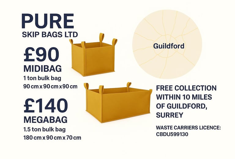 At Pure Skip Bags LTD, we make waste removal simple, affordable, and hassle-free. Based in Guildford, Surrey, we provide a convenient skip bag service designed for households, tradespeople, and businesses.